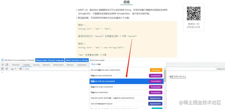 - 在想要的截图页面,唤出调试工具 Mac ⌘Command + ⌥Option + I(Windows 为 Ctrl + Shift + I)