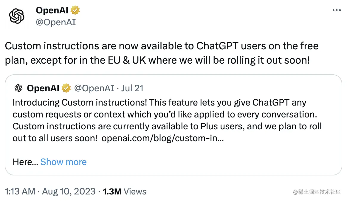 ◇ ChatGPT 自定义功能解锁,定制独特 AI 体验 🔗 Twitter