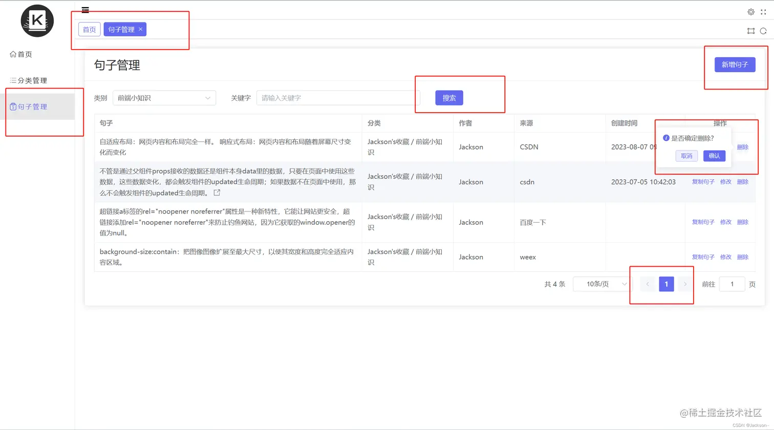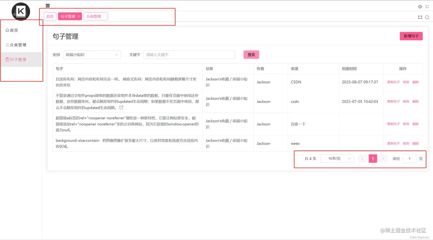 el-tag 标签 + Pagination 分页 + el-menu菜单