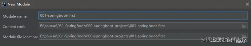(4)设置模块名称、Content Root 路径及模块文件的目录,然后点击finish即可