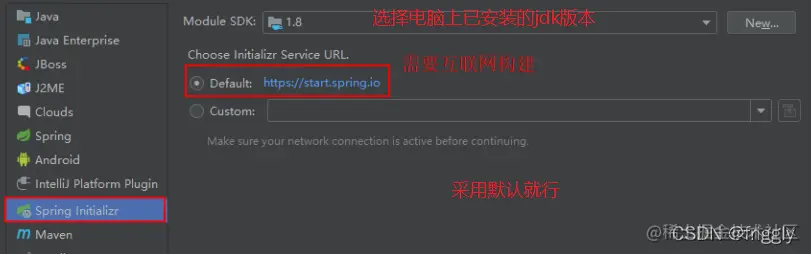 (1)创建一个 Module,选择类型为Spring Initializr 快速构建
