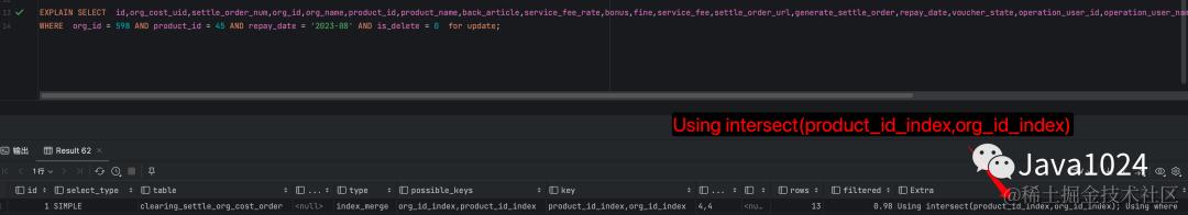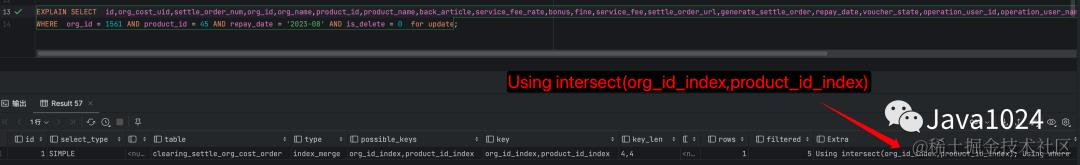 因为xx服务这部分Mq消费的代码逻辑不是我写的,而且代码逻辑比较复杂,直接改代码不太现实,最终决定在这张表上添加联合索引(org_id,product_id,repay_date)。