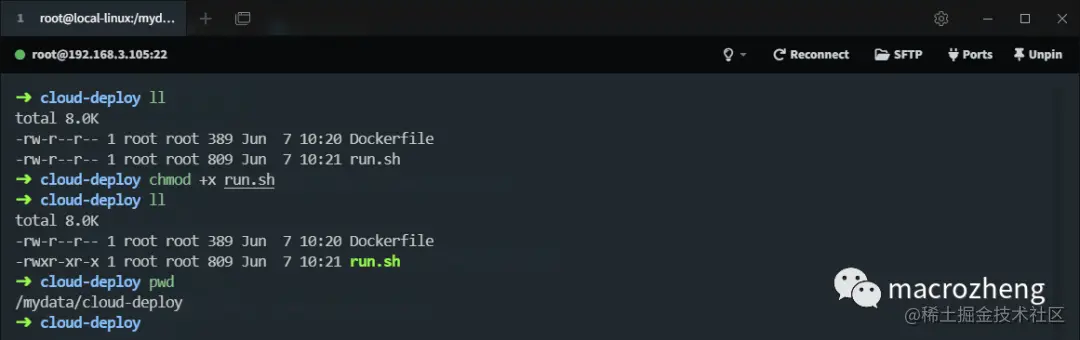 将这两个文件上传到Linux服务器上,给run.sh添加可执行权限;