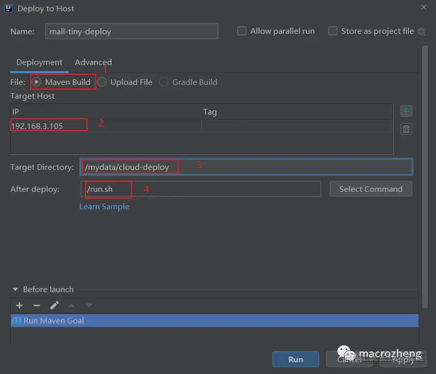 - 接下来编辑下Maven构建的目标,只打包mall-tiny-deploy模块即可;
