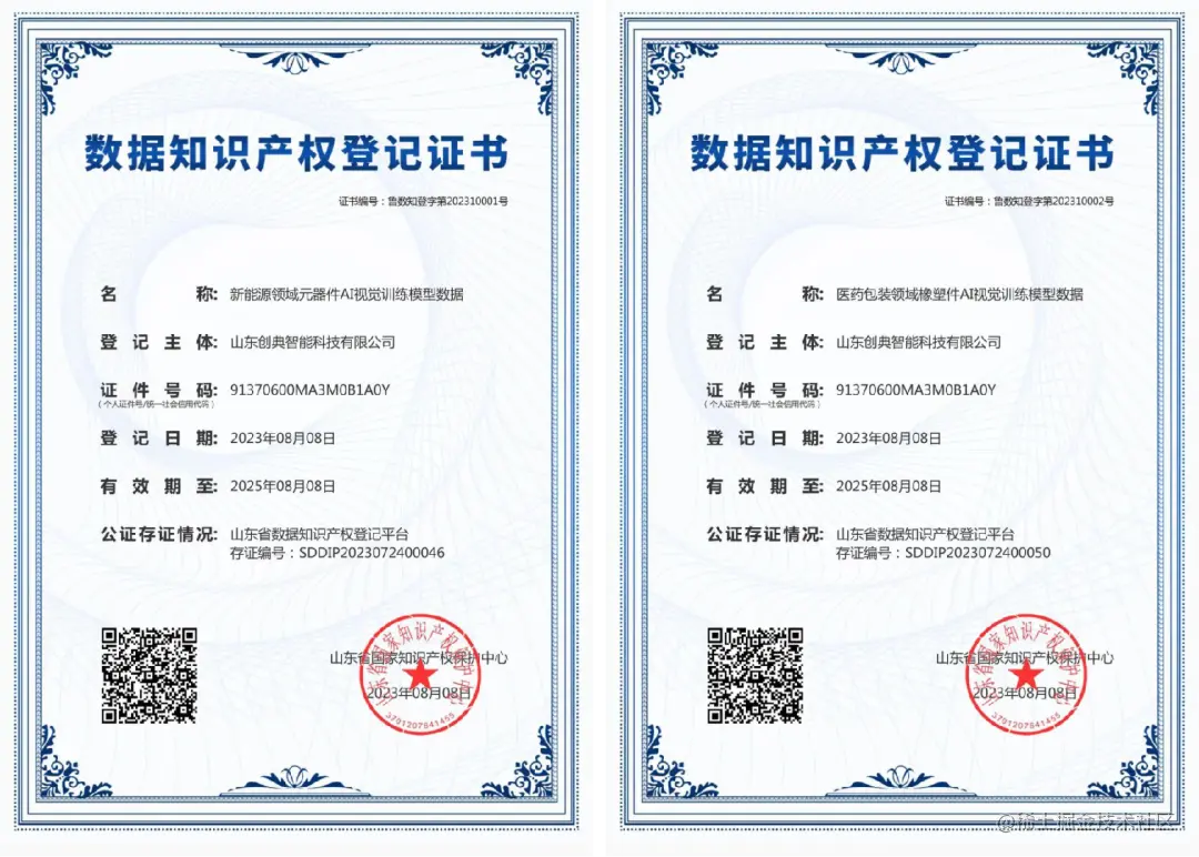 8月8日,山东省国家知识产权保护中心向山东创典智能科技有限公司颁发2张数据知识产权登记证书,这是山东省自开展数据知识产权登记试点工作以来颁发的首批电子证书。