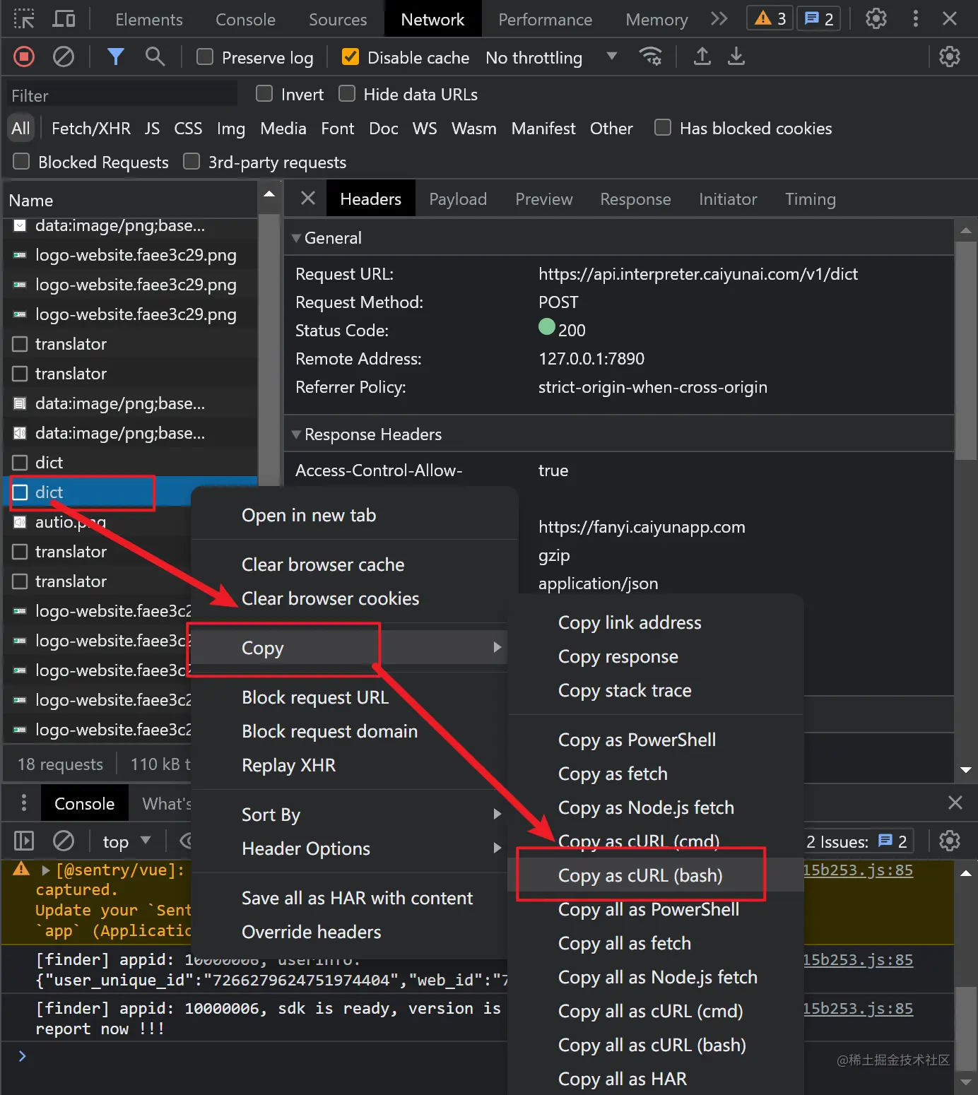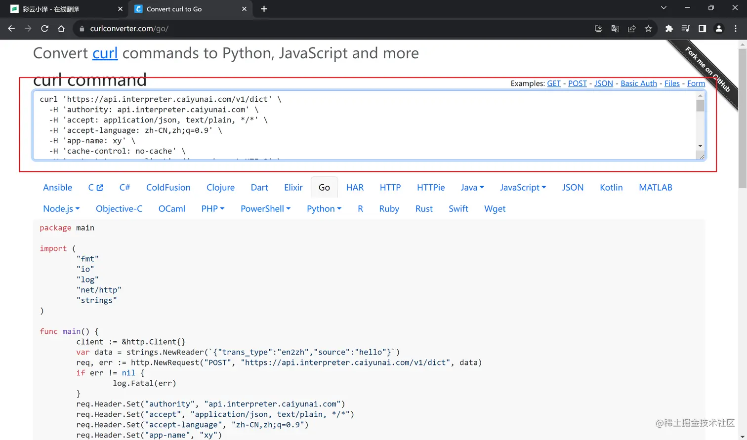 点击 Copy as cURL(bash) 后,打开这个网址:curlconverter.com/go/