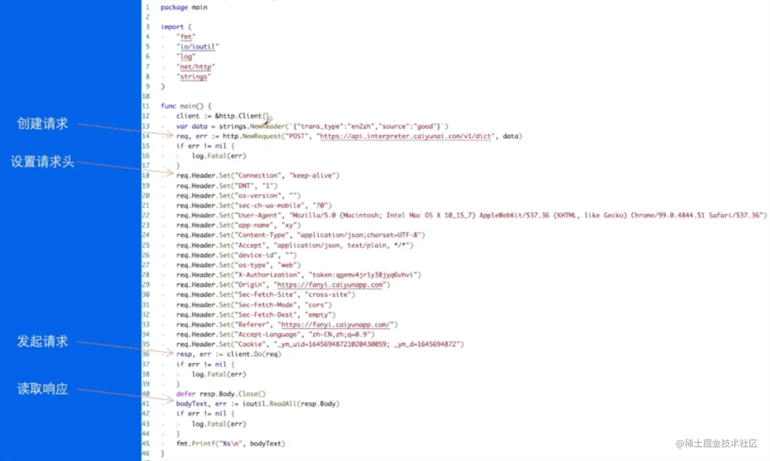 实现这个程序的关键在于,如何用Go语言发送HTTP请求和解析JSON。