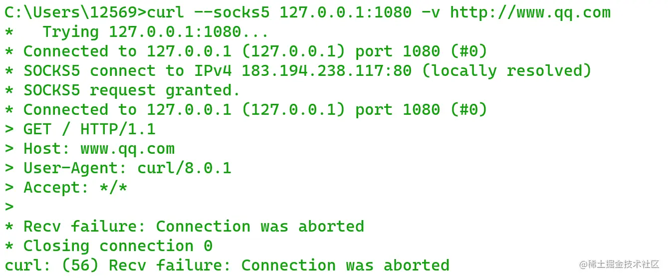 curl --socks5 127.0.0.1:1080 -v http://www.qq.com