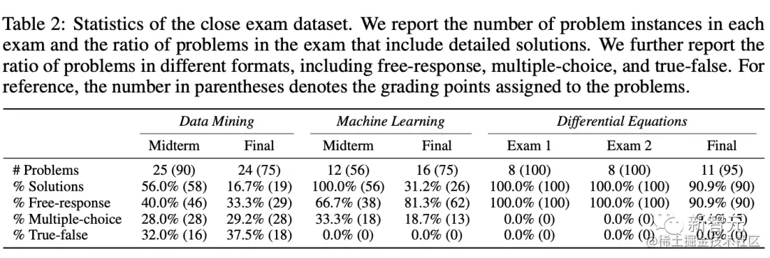 另一个是「封闭数据集」,为了模拟真实世界的评估,其中包含了计算机科学和数学三门大学课程的7套期中和期末考试题。