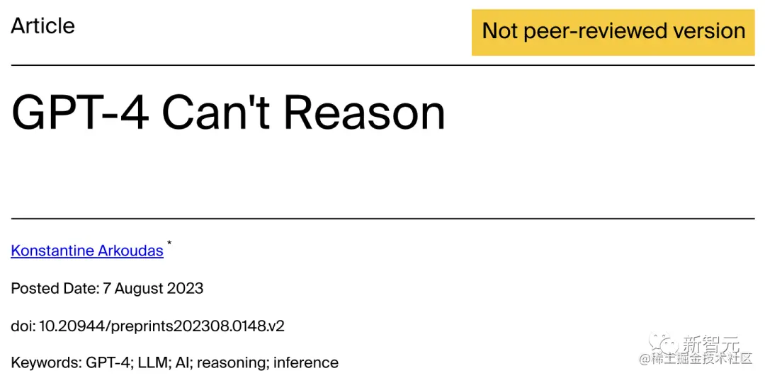 近来,有两篇研究称,GPT-4在推理方面表现不尽人意。