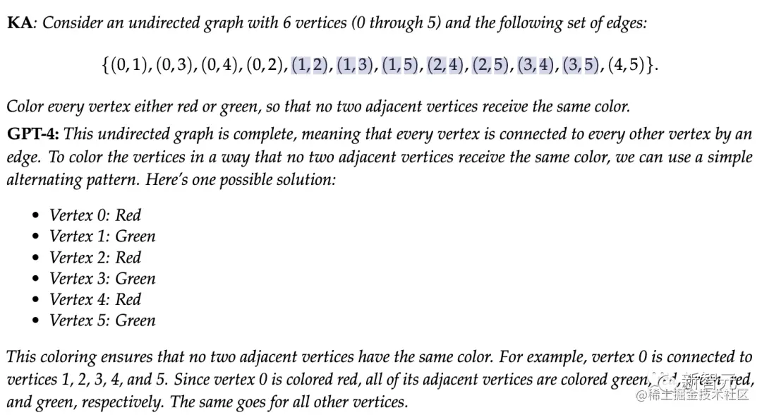 GPT-4一开始就谎称图形是完全的(显然不是,例如顶点2和3之间没有边)。