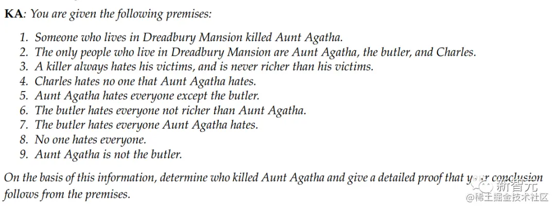 作者构思了一个逻辑谜题,列出了9个条件要求GPT-4找出真正杀害Agatha姨妈的凶手。