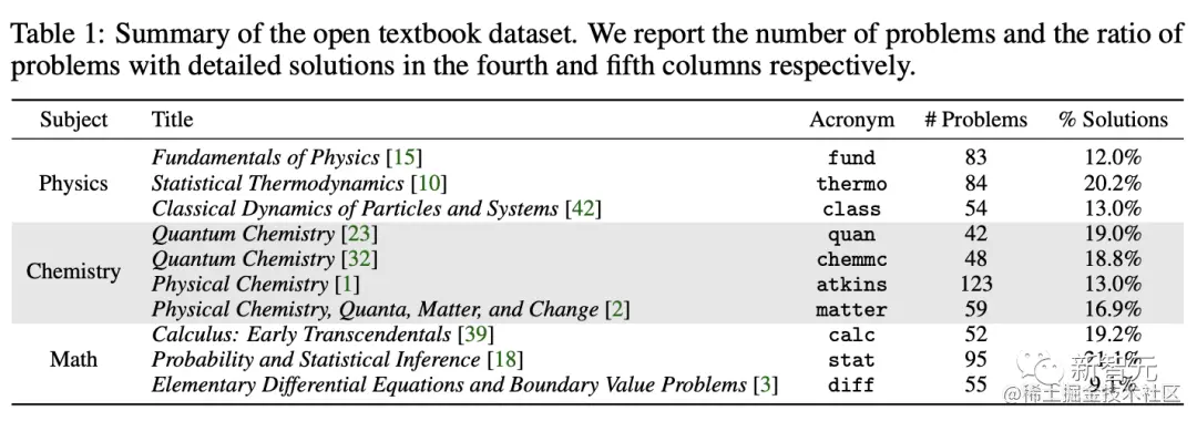其中,「开放数据集」包括从大学课程广泛使用的教科书中收集的5个问题,涵盖了基础物理、热力学、经典力学、量子化学、物理化学、微积分、统计学和微分方程。