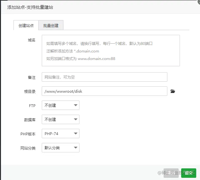 - ④然后将前端项目用npm run build 打包,再将dist目录上传到站点的文件目录里,解压。