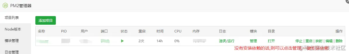 - ②宝塔面板->软件商店->打开PM2管理器->设置->添加项目