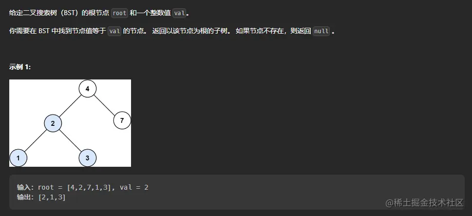 // 边界条件是如果 root 是 null 就返回 true,如果 root 的值和 val 相等那么就直接返回 root