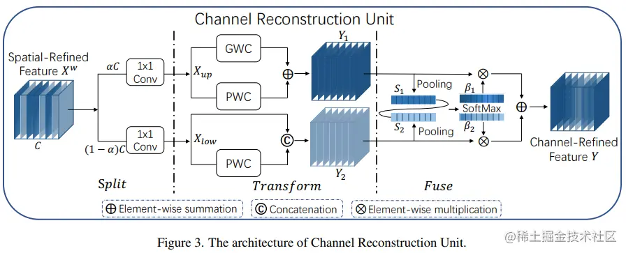 - CRU 则采用一种分割-转换-融合的策略减少通道冗余