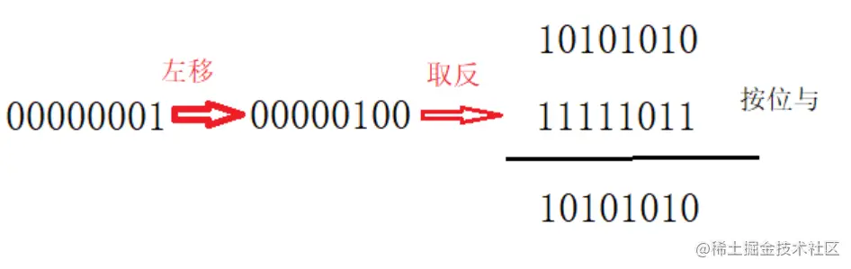 同样的将要清空的那一位置为0,进行按位与,不论原本该位是0还是1,都将该位置0