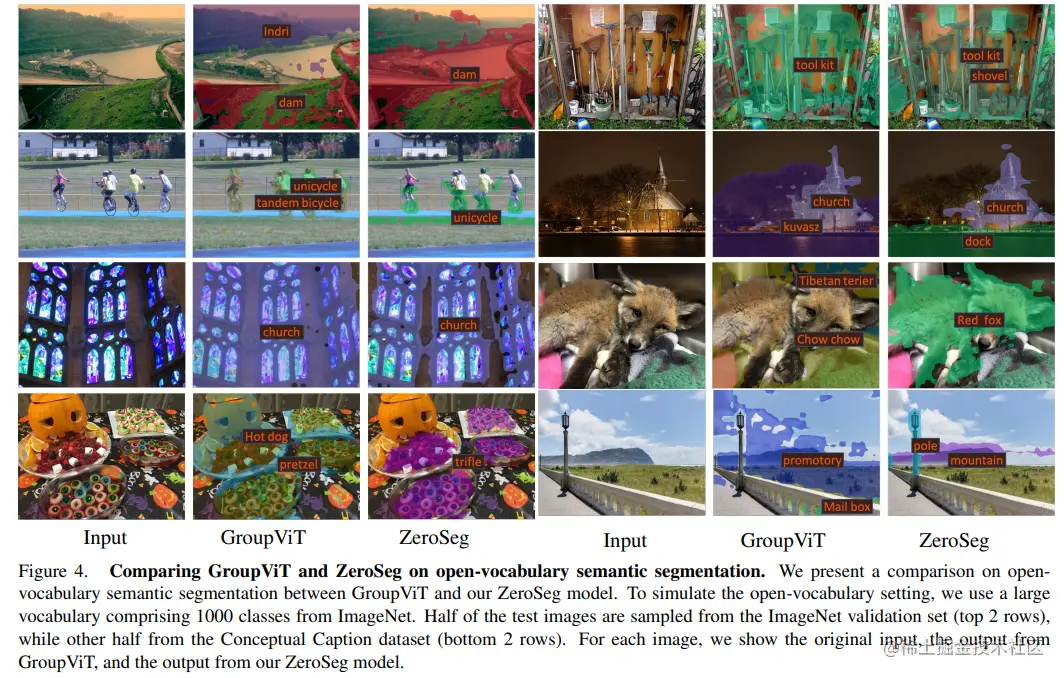 可以看出,ZeroSeg 只需依赖再 ImageNet-1k 上预训练的 ViT 权重,而无需具体语义标签,借助 CLIP 等现有的视觉-语言模型即可获得性能优异的零样本分割性能。