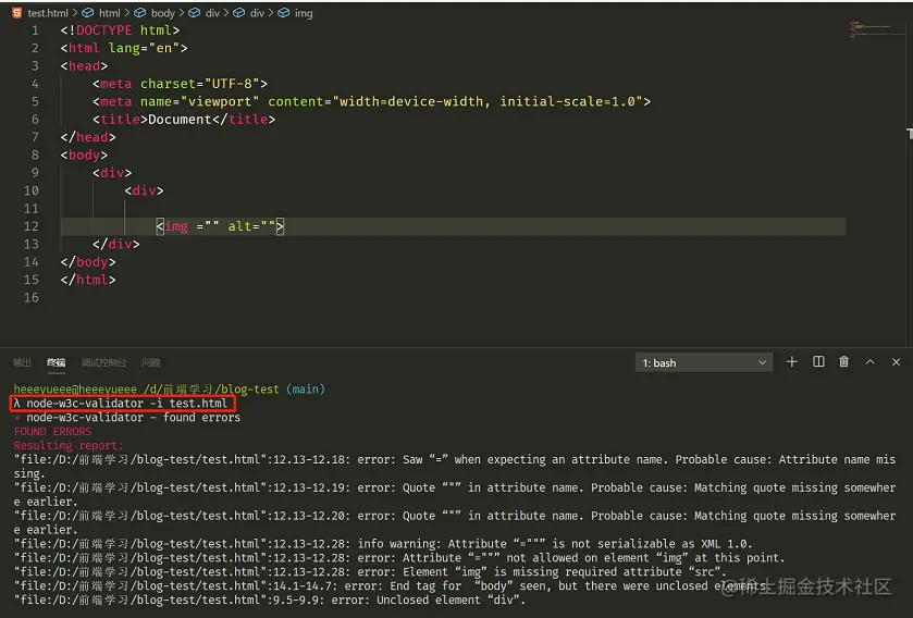 css 复制代码 node-w3c-validator -i 被检查的HTMl文件.html