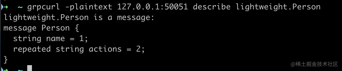 grpcurl -plaintext 127.0.0.1:50051 describe lightweight.Person