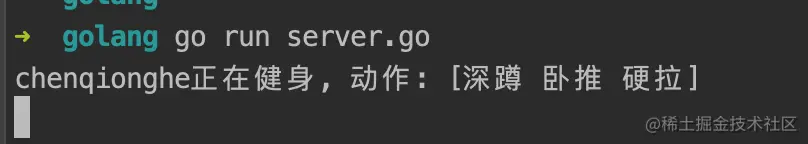 fmt.Printf("%s正在健身, 动作: %s\n", in.Name, in.Actions)
