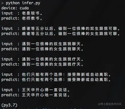 #3 8.4 ConvSeq2Seq模型 pycorrector/seq2seq 模型使用示例: