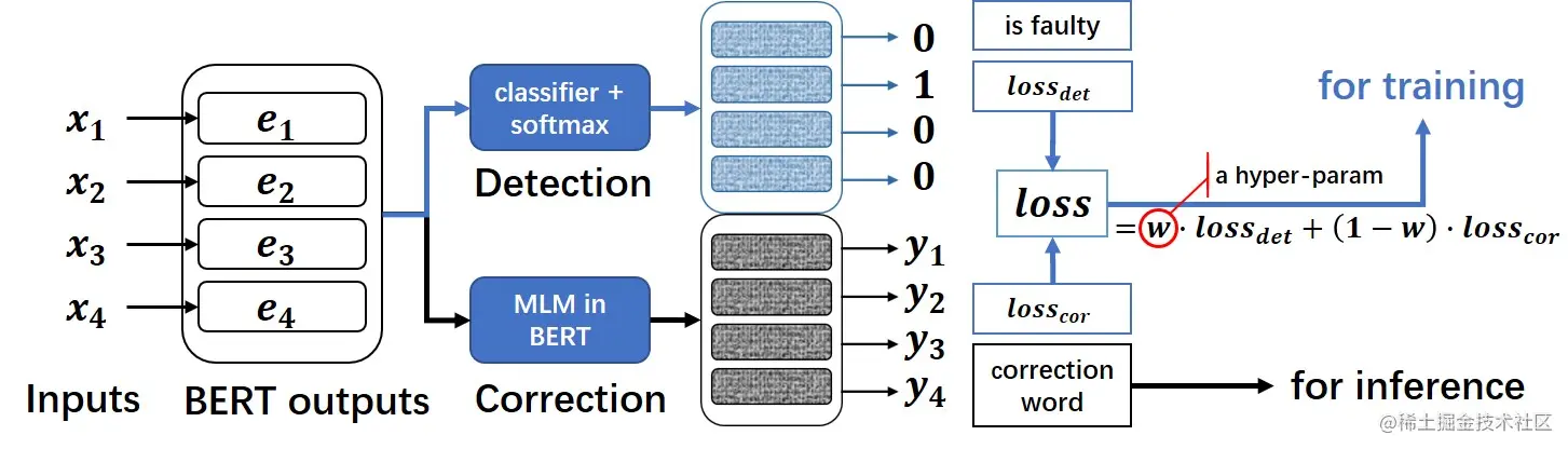 - 中文纠错分为两步走,第一步是错误检测,第二步是错误纠正;