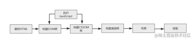 通过网络模块加载到HTML文件后渲染引擎渲染流程如下,这也通常被称作关键渲染路径(Critical Rendering Path):