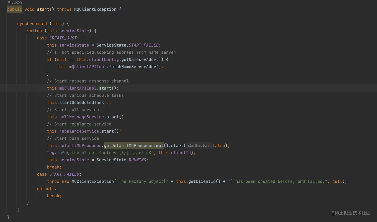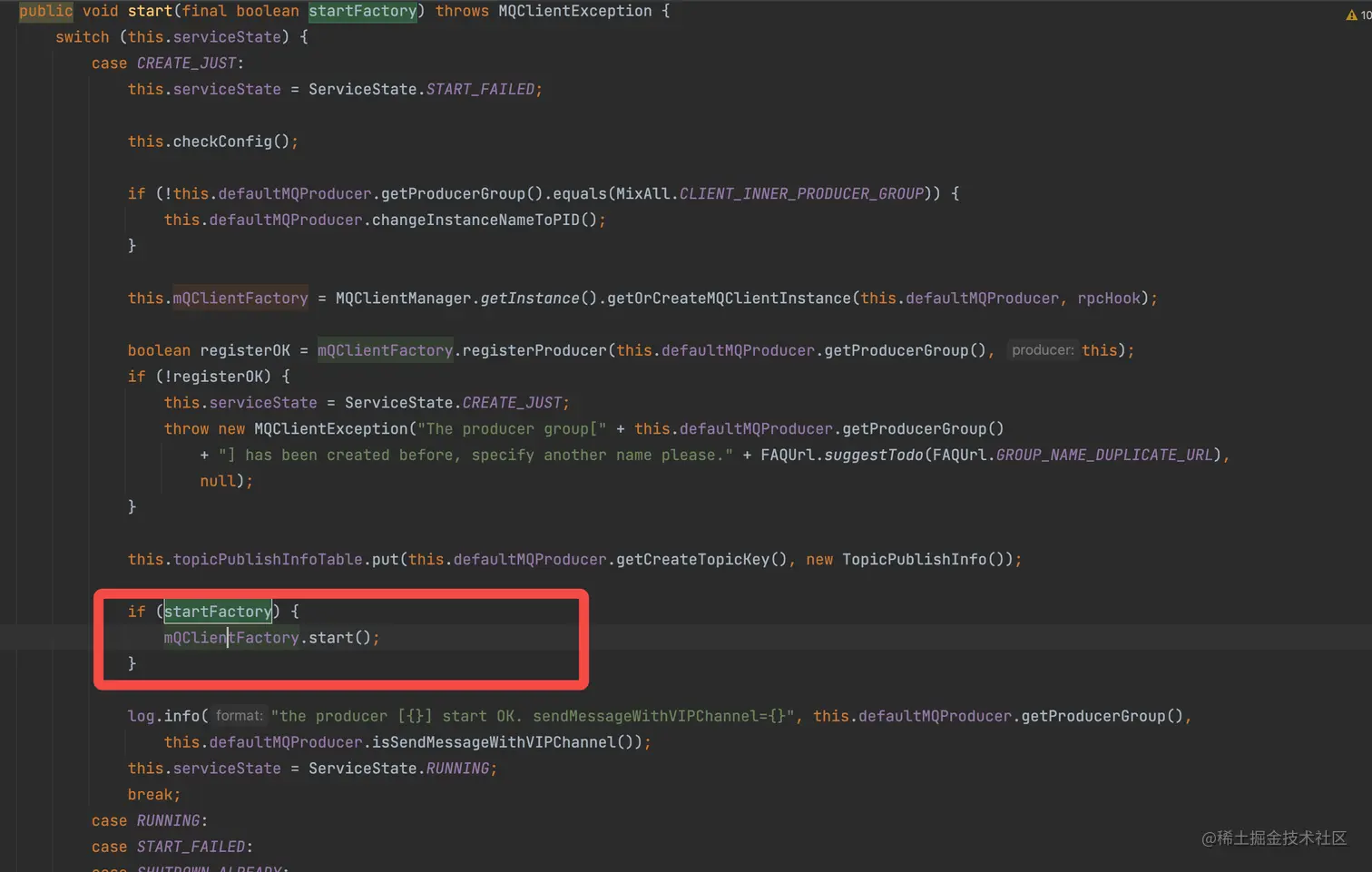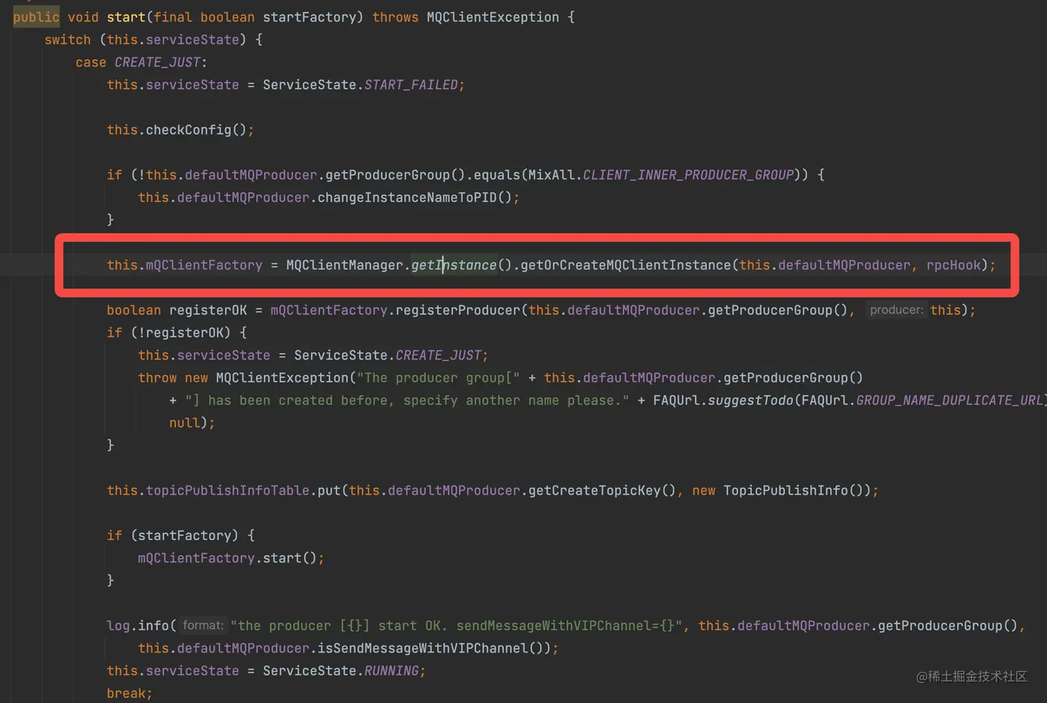 DefaultMQProducerlmpl的 start 方法来跟踪