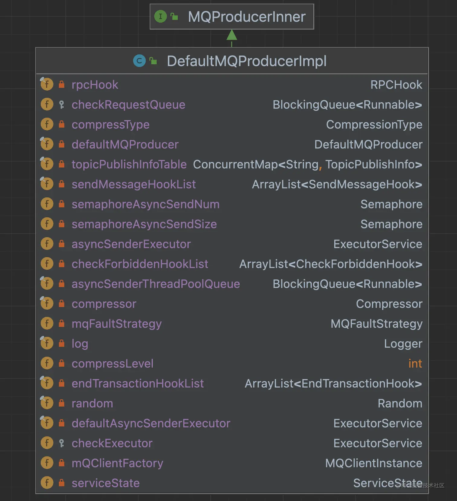 到这里生产者启动的流程就差不多了,最后贴一张类图(核心是这个MQClientInstance客户端)。
