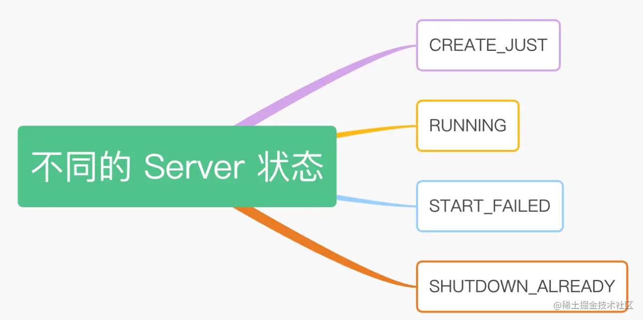 分别是:CREATE_JUST、RUNNING、START_FAILED、SHUTDOWN_ALREADY