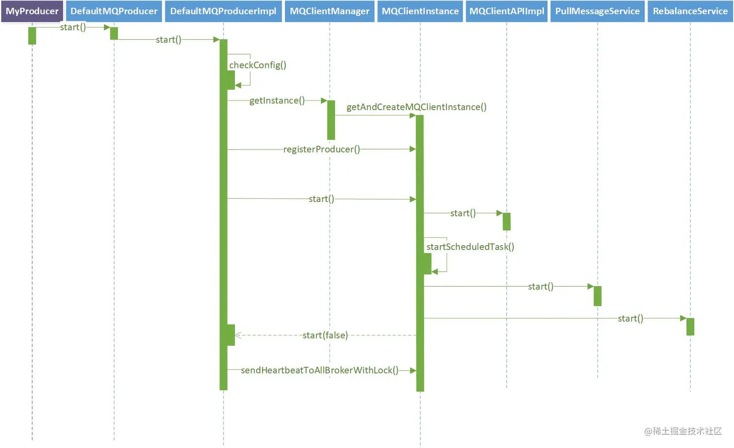 生产者启动时序图: