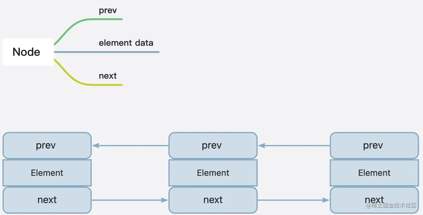 这个是LinkedList内部类Node的根据当前index查询对应元素的方法,首先判断当前要查询的index在列表中前半段还是后半段(通过index < (size >> 1)判断实现),位于前半段时,正序循环查询,位于后半段时,逆序循环查询,时间复杂度是O(n)。