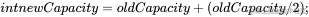 int newCapacity = oldCapacity + (oldCapacity >> 1);