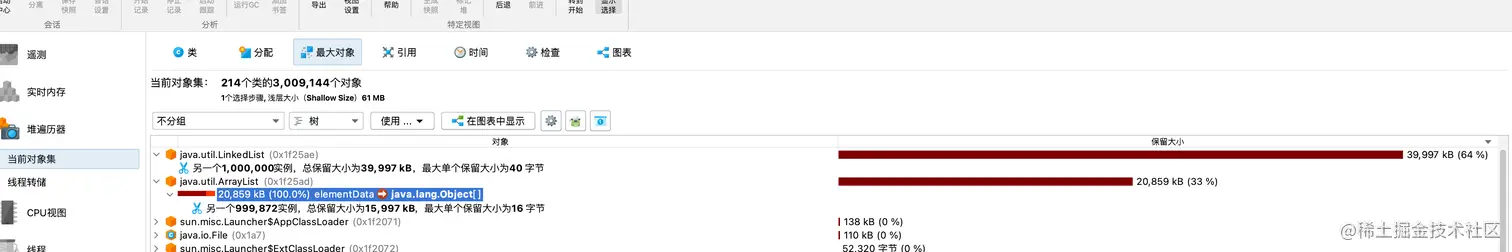 可以看到,LinkedList创建100万个对象,两者插入性能类似,使用内存39997KB,ArrayList创建100万个对象,使用内存20859KB,LinkedList比ArrayList快约13%,为什么LinkedList需要比ArrayList近一半的内存?