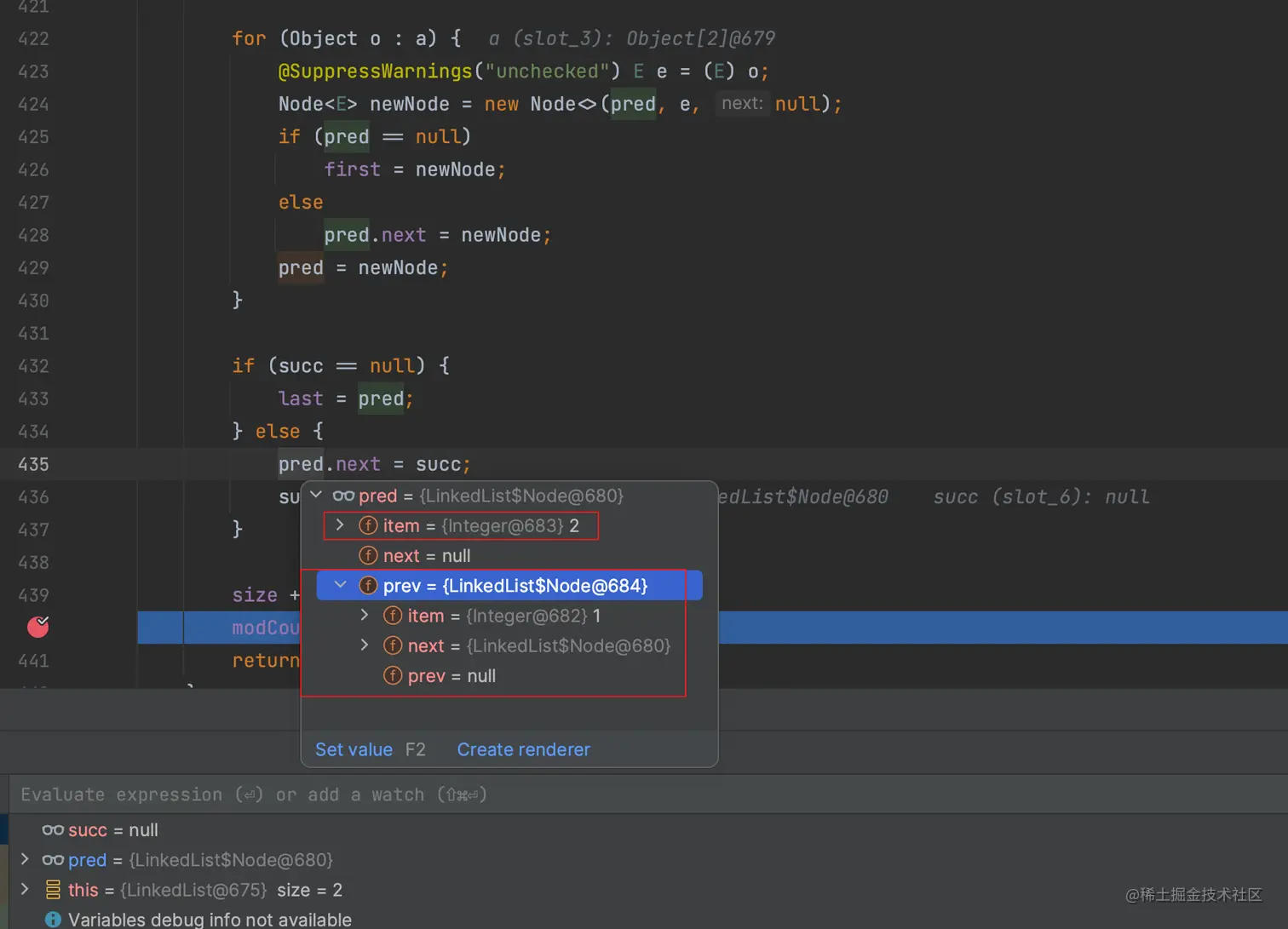 随后是遍历数组信息,创建节点,维护节点间上一个、下一个关系。