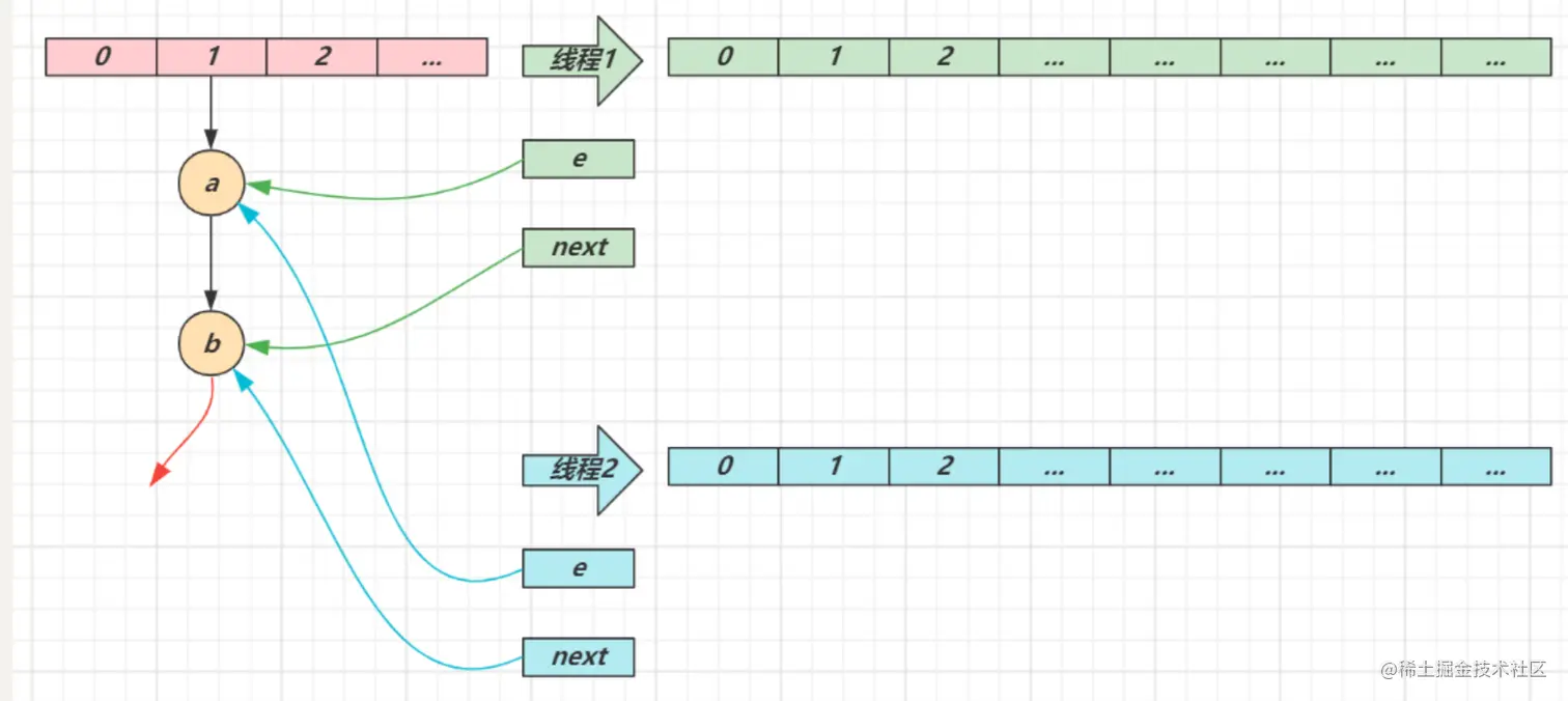 - 如果 put 的线程与扩容线程操作的链表是同一个,put 线程会阻塞