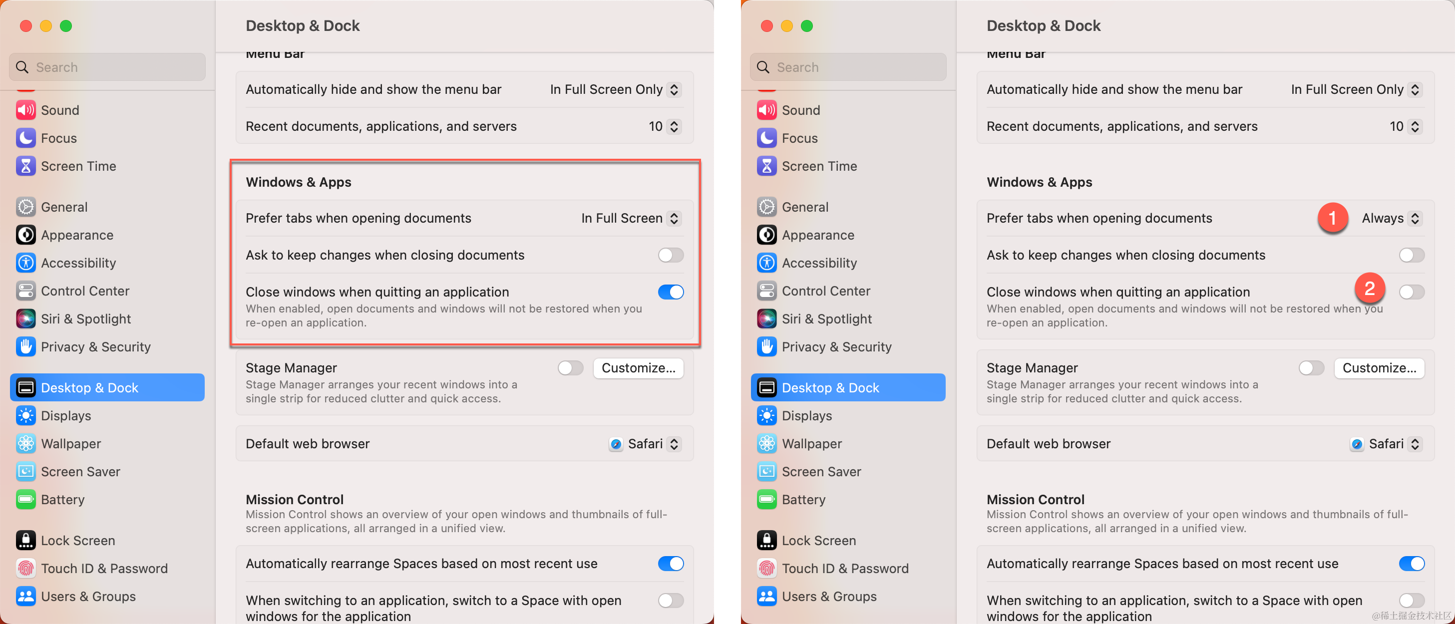 System Settings → Desktop & Dock 下: