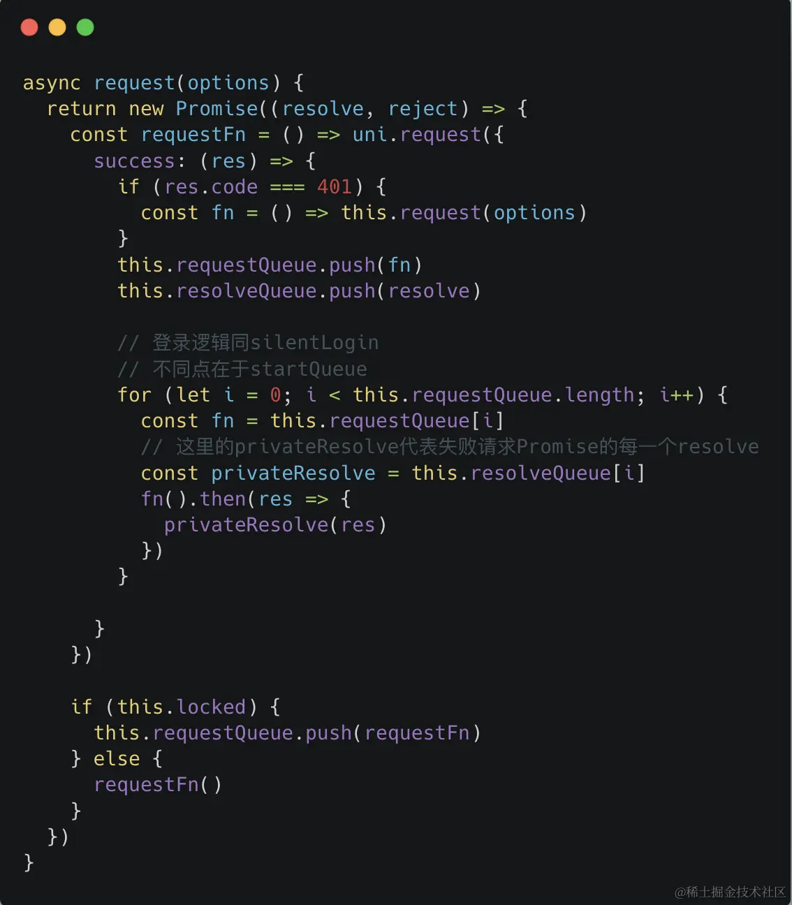 - ⚠️ 当时在解决业务请求code401的逻辑时,没有正确的resolve回到正确的结果,这里可能是需要注意一下的