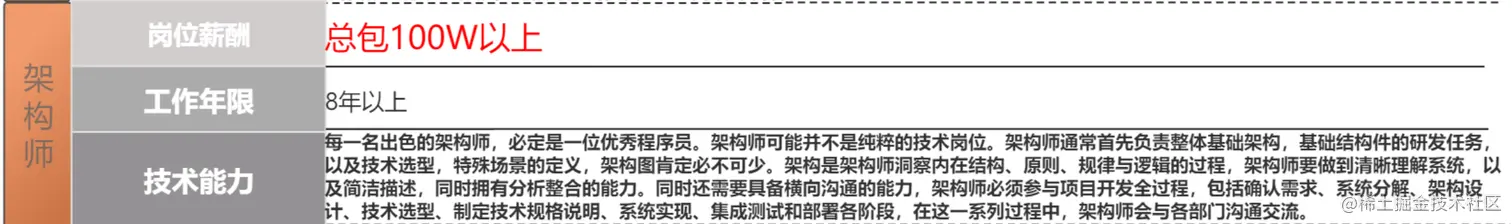技术能力:架构师是一位出色的程序员,负责整体基础架构设计和研发任务,技术选型,定义特殊场景,并绘制架构图等。架构师需要清晰理解系统并能简洁描述和整合各个部分。此外,他们还需要具备横向沟通的能力,在项目开发的各个阶段与各部门进行沟通和交流。