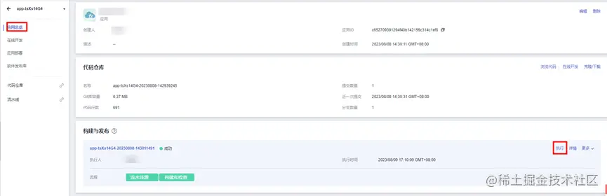 6.在此应用中,在有“应用总览”中“构建与发布”下执行流水线