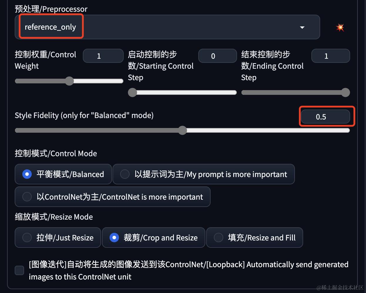Reference 还有一个 Style Fidelity 参数,翻译过来就是风格忠实度,越小越接近使用的大模型的风格,越大越接近参考图的风格,但是越大可能出现图片崩坏的情况,0.5是个平衡值。