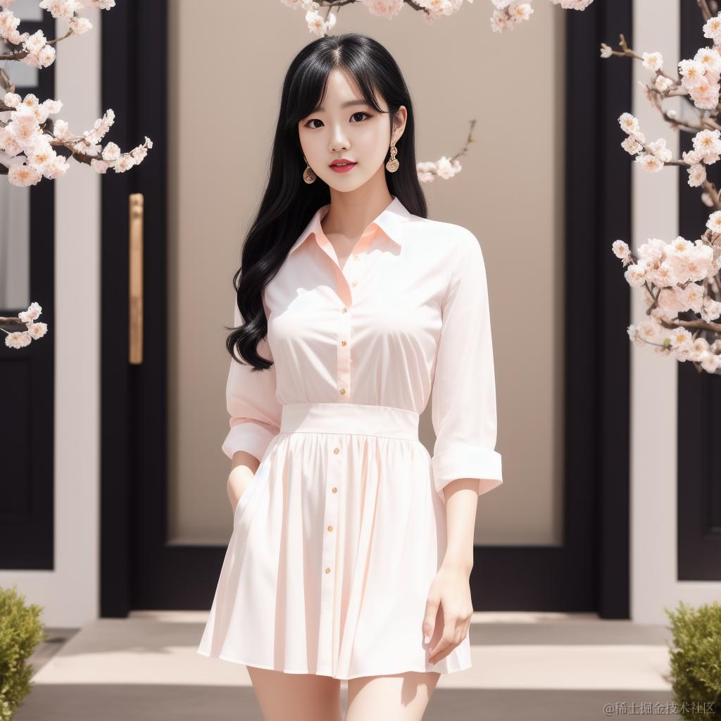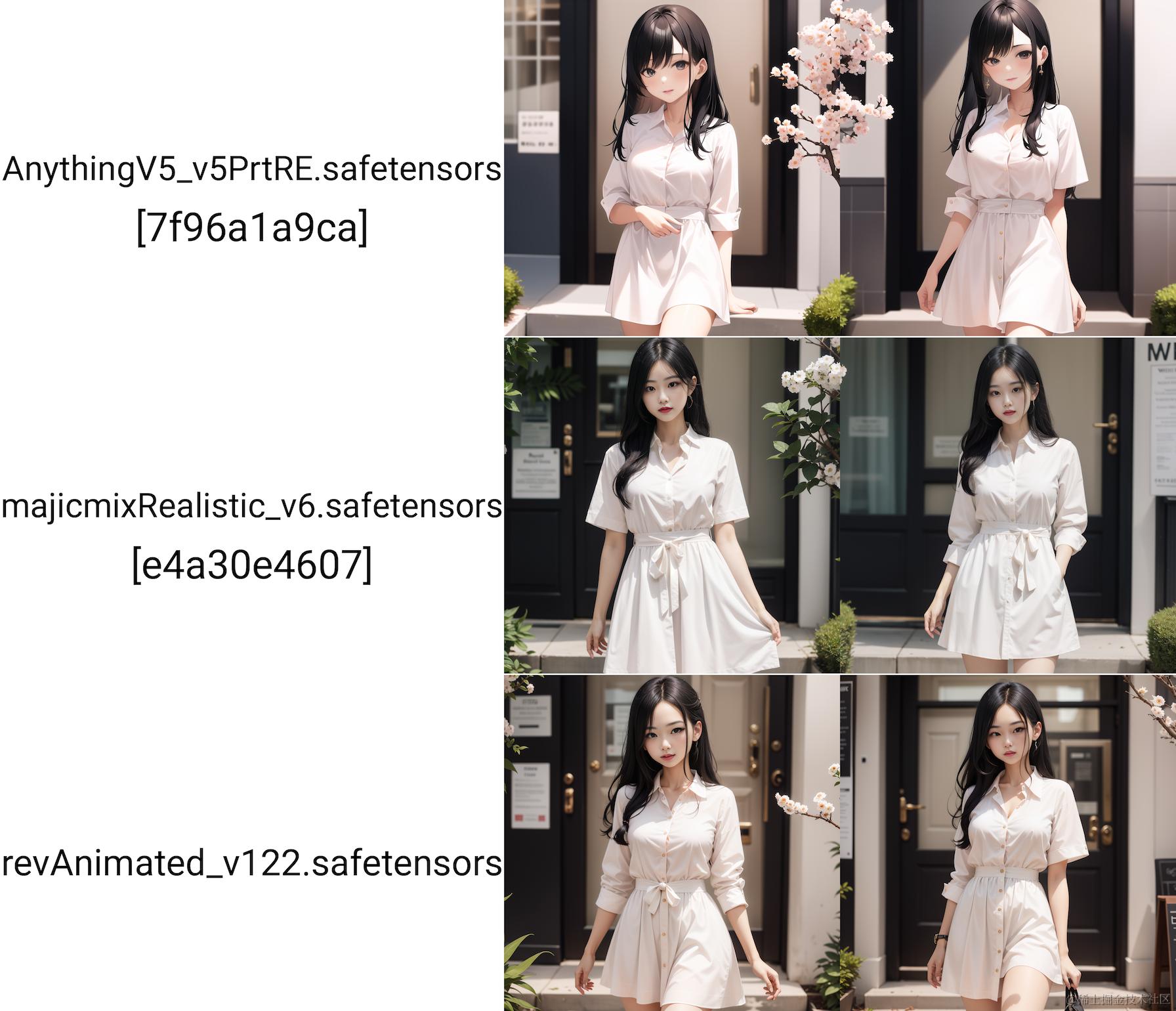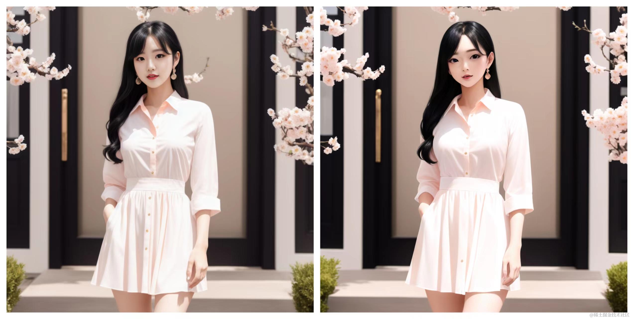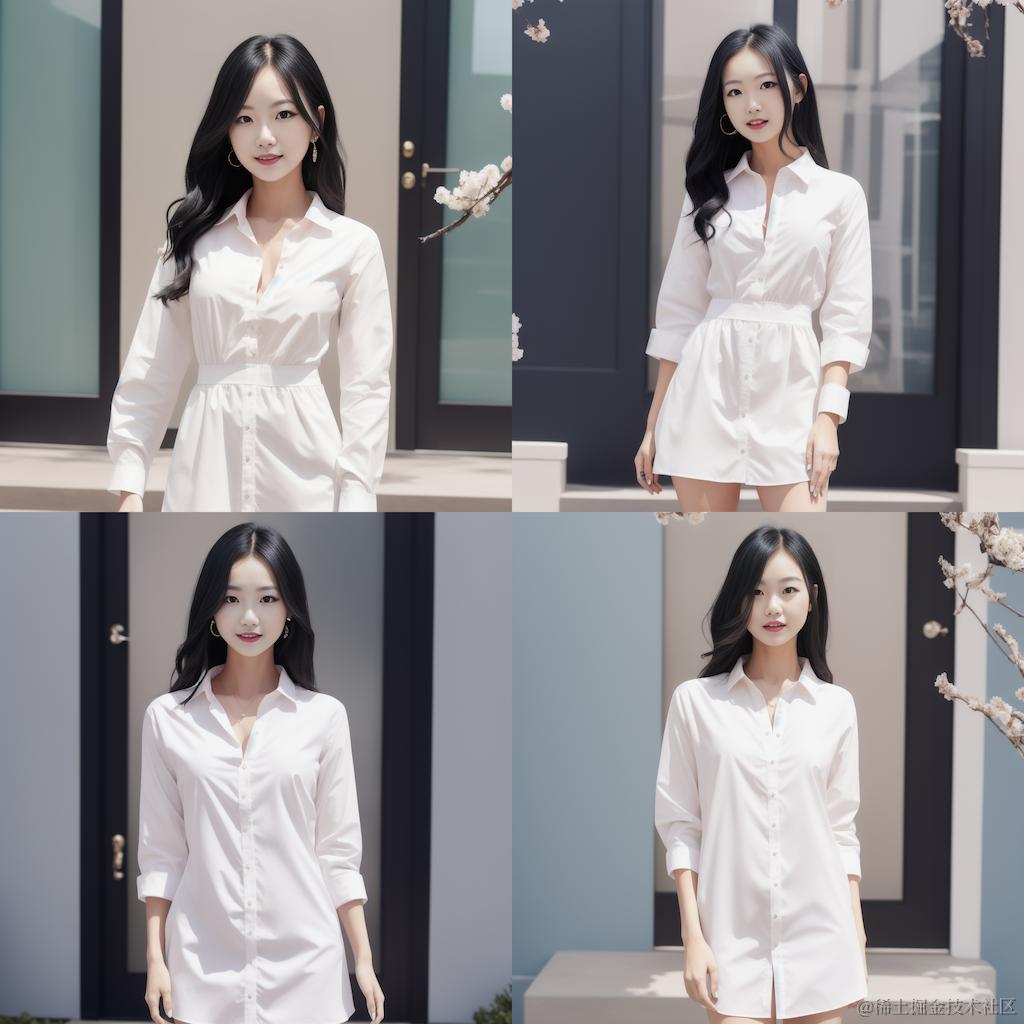 提示词还是这个:1girl, white shirt and dress, 其它参数都保持不变。