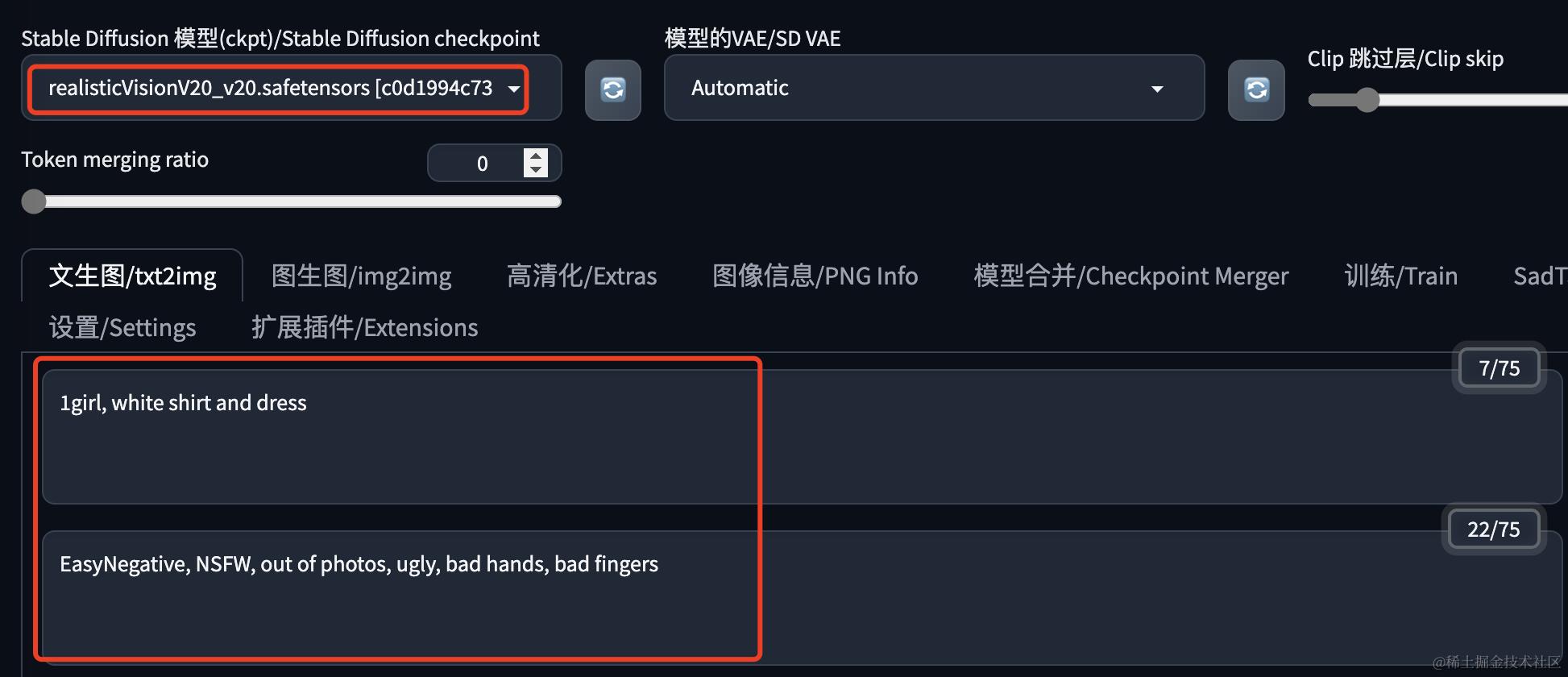 首先是选择一个大模型,这里使用的是和上面生成图片相同的模型:realisticVisionV20;