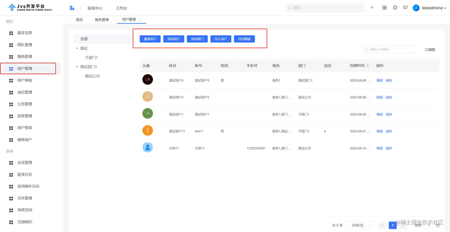 在JVS中,主租户才有租户管理的功能,也就是只有主租户可以创建子租户。主租户在平台中有且只有唯一一个,子租户可以开多个租户,租户之间的数据是隔离的。