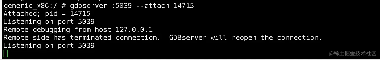 gdbserver :5039 --attach 14715