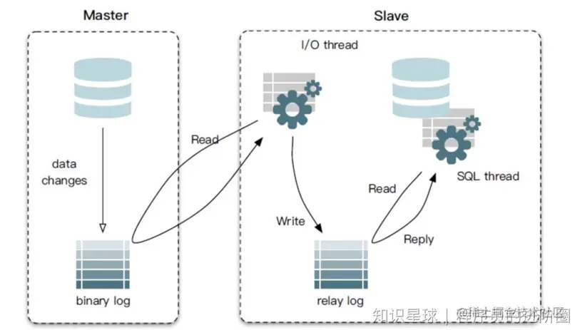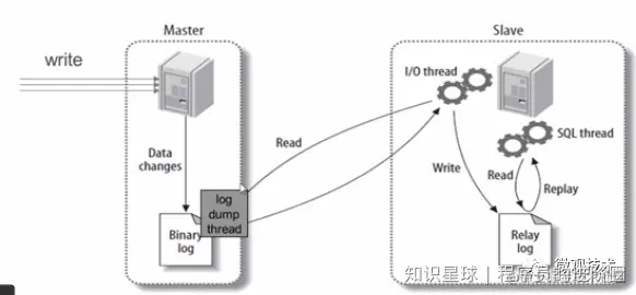master 主节点的 binlog 传到 slave 从节点后,被写入 relay log 里,从节点的 SQL 线程从 relay log 里读取日志然后应用到 slave 从节点本地,从而使从服务器和主服务器的数据保持一致。