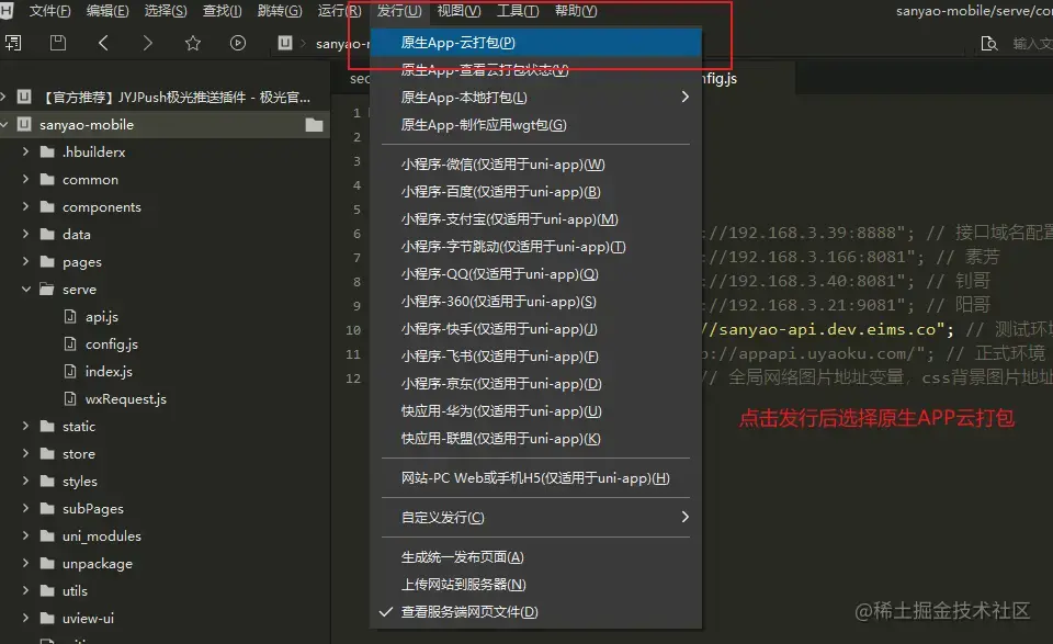 2.打包对应的应用系统,以下分为安卓端和iOS端