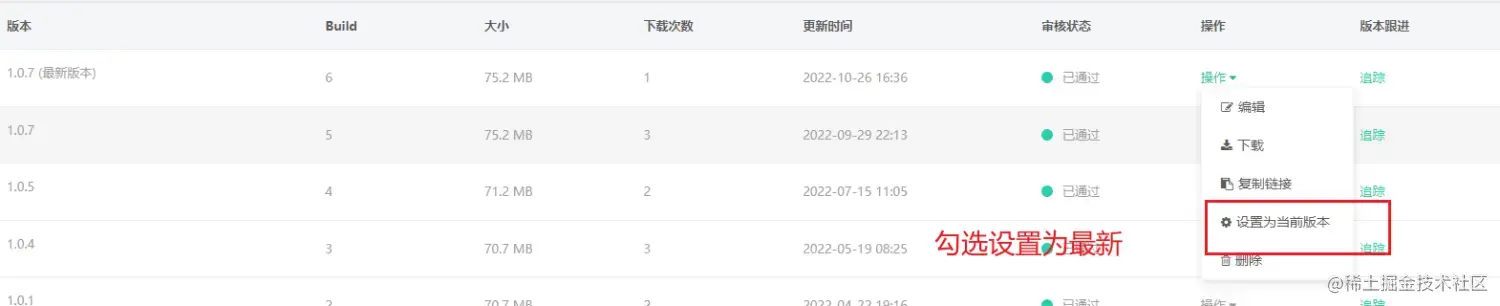 注意:将当前发布的最新版本设置为最新版本